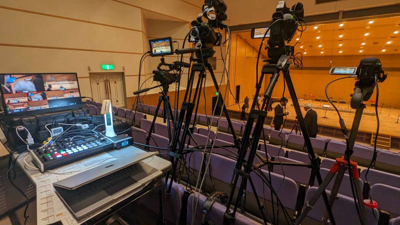 2025年1月19日に高崎芸術劇場で公演されました舘野真由花 ソプラノリサイタルを収録させていただきました。4台のカメラでスイッチング一発撮りで行わせていただきました。とても豊かな響きのホールで、3点吊りマイクの音声のみを使用。事後編集は一切することなくオリジナル音声でご納品させていただきました。使用した機材はカメラはSony NX80が4台とGoPro11、レコーダーはBlackmagic Video Assist 3Gを2台、スイッチャーはローランドのV1HD。