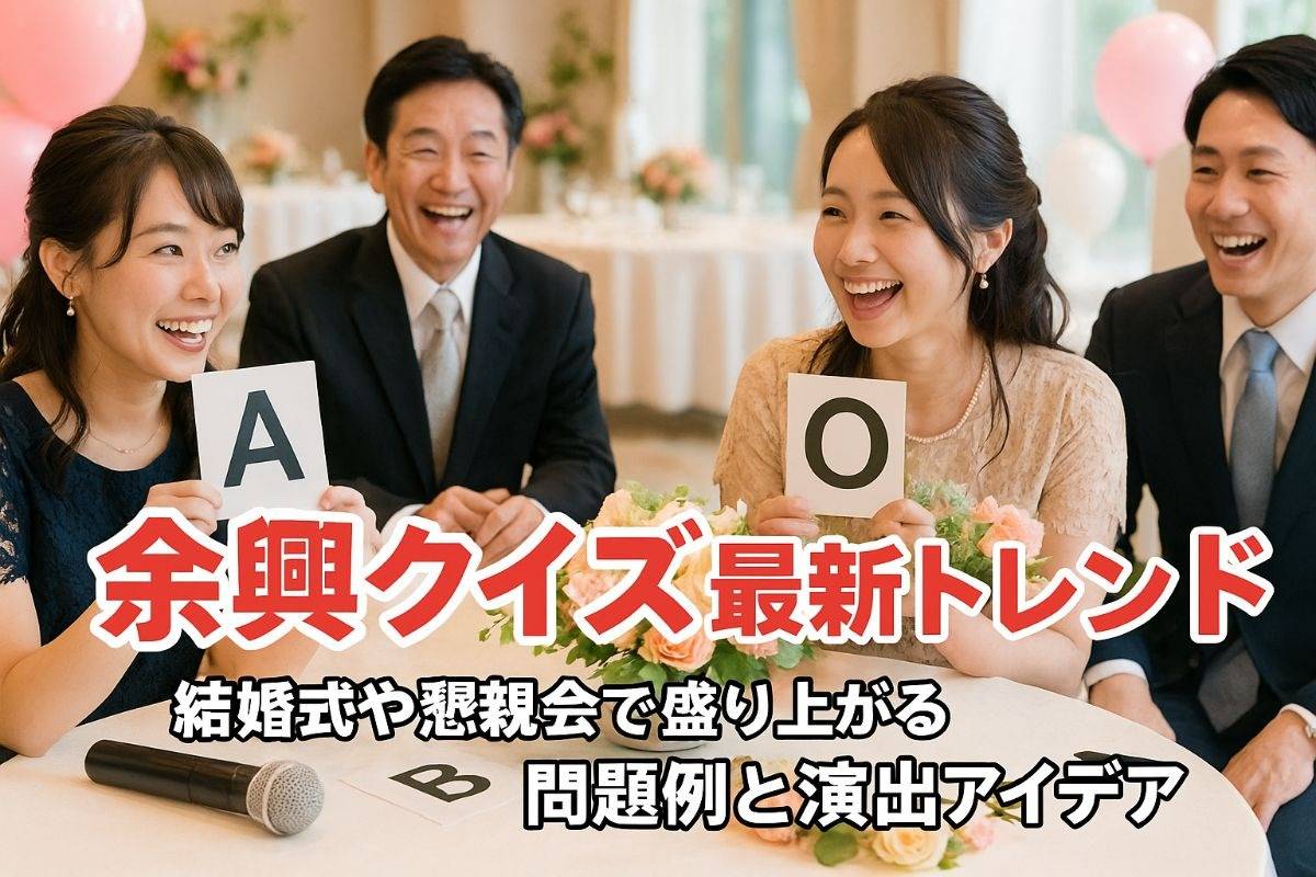 本記事では、結婚式やパーティー現場で数多くの余興演出を手がけてきた実績から、余興クイズの基礎知識と最新トレンド、企画のコツ、進行・運営の最適解まで徹底解説。最後まで読むことで、忙しい新郎新婦や幹事でも「全員が楽しめる余興」を最短で実現できる実用ノウハウが手に入ります。
