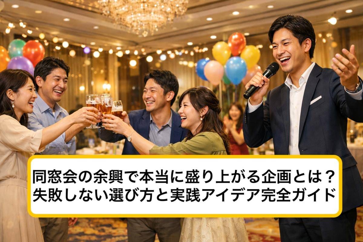 本記事では、同窓会の現場で実際に効果があったアイデアや、失敗しない余興選びのコツ、準備から進行までの実践ノウハウを徹底解説します。最後まで読むことで、参加者全員が「やってよかった!」と感じる同窓会のつくり方が必ず見えてきます。